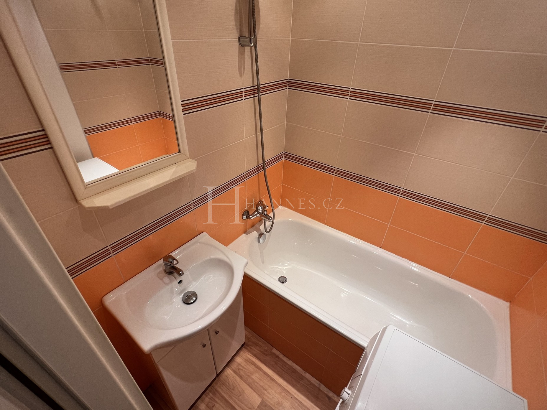 V bytě je samostatná kuchyň, obývací pokoj, koupelna s vanou, toaleta je zvlášť.