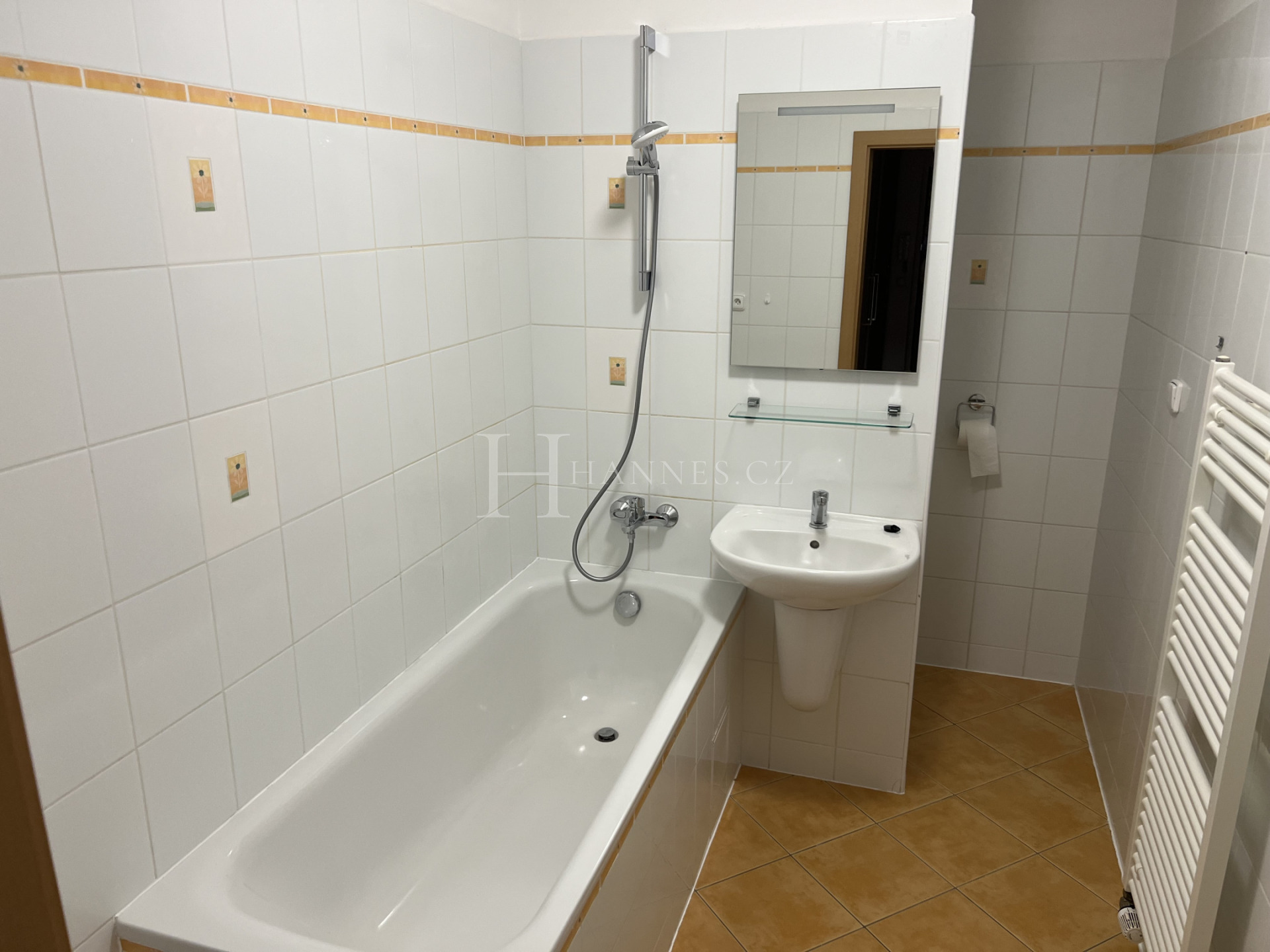 - koupelna (s vanou, umyvadlem, wc, otopným žebříkem, přípravou na pračku a místem na sušičku).