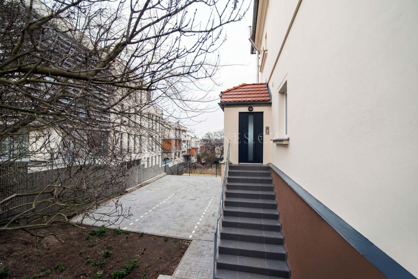 Exkluzivně Vám zprostředkujeme pronájem velmi pěkného, zrekonstruovaného, zařízeného bytu kategorie 1+kk, o podlahové ploše 26m², situovaného do 1. patra 2 patrové vily v ulici Karlovarská v pražské Ruzyni.