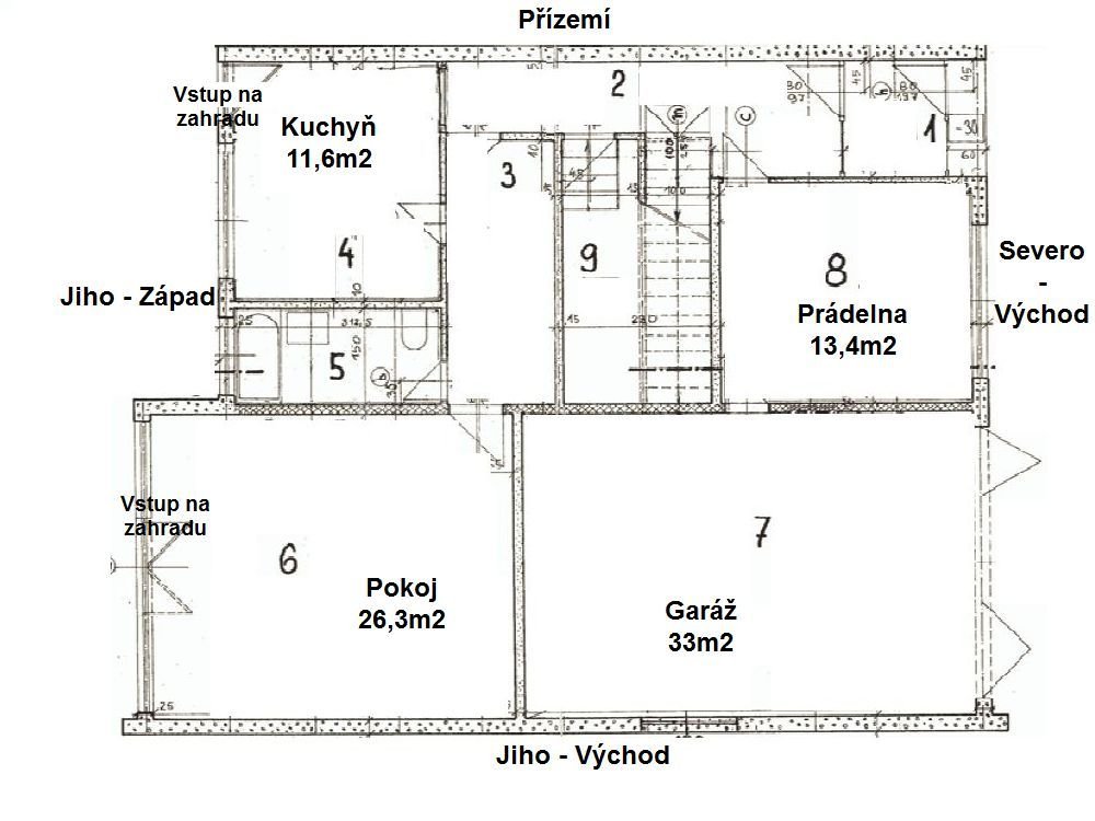 V současné době je situace přízemí 1+1+koupelna+prádelna+veranda+prostorná garáž. Celkem 117m2